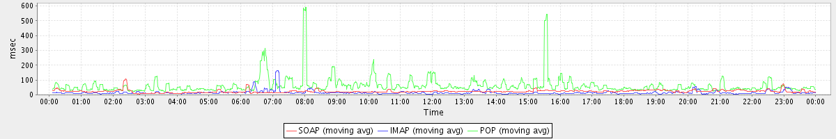 Host zm05.stanford.edu: Mailboxd: Response Time by Client Protocol