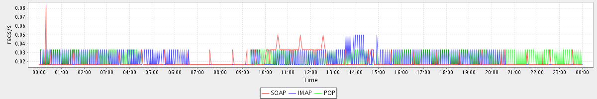 Host zm01-loadtest.stanford.edu: Mailboxd: Request Rate by Client Protocol