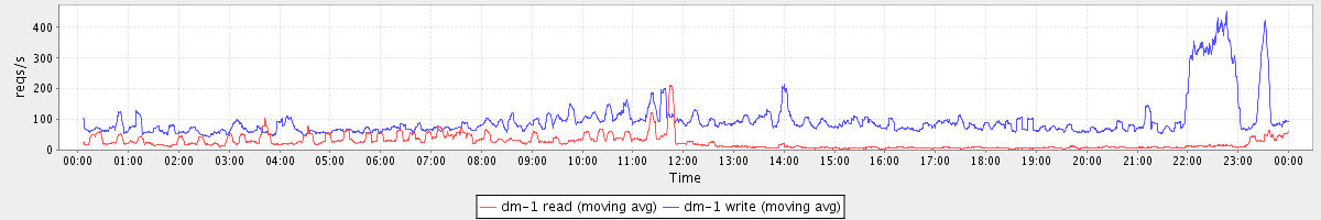 avg(dm-1 read) = 24.84 avg(dm-1 write) = 96.01