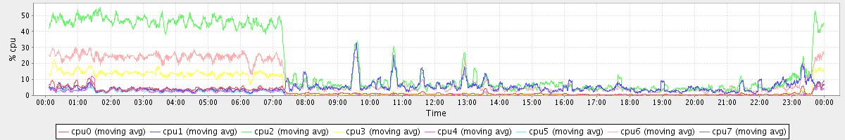 avg(cpu0) = 1.41 avg(cpu1) = 0.21 avg(cpu2) = 0.30 avg(cpu3) = 0.19 avg(cpu4) = 0.16 avg(cpu5) = 0.14 avg(cpu6) = 0.20 avg(cpu7) = 0.16