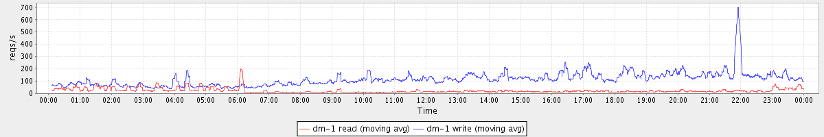 avg(dm-1 read) = 22.92 avg(dm-1 write) = 114.93