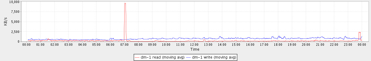 avg(dm-1 read) = 239.36 avg(dm-1 write) = 724.70