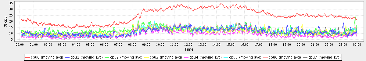 avg(cpu0) = 2.15 avg(cpu1) = 0.21 avg(cpu2) = 0.34 avg(cpu3) = 0.21 avg(cpu4) = 0.11 avg(cpu5) = 0.16 avg(cpu6) = 0.24 avg(cpu7) = 0.13