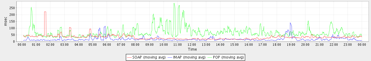 Host zm07.stanford.edu: Mailboxd: Response Time by Client Protocol