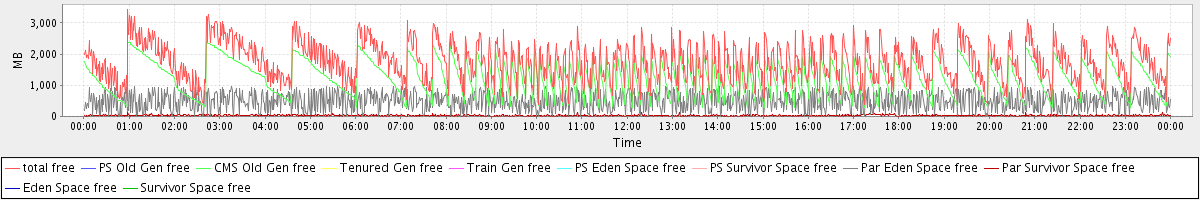 avg(total free) = 1750.96 avg(PS Old Gen free) = 0.00 avg(CMS Old Gen free) = 1229.06 avg(Tenured Gen free) = 0.00 avg(Train Gen free) = 0.00 avg(PS Eden Space free) = 0.00 avg(PS Survivor Space free) = 0.00 avg(Par Eden Space free) = 491.43 avg(Par Survivor Space free) = 30.47 avg(Eden Space free) = 0.00 avg(Survivor Space free) = 0.00