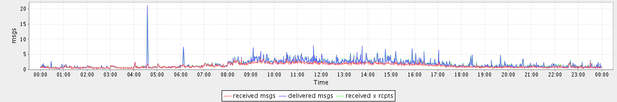 avg(received msgs) = 1.28 avg(delivered msgs) = 1.69 avg(received x rcpts) = 1.77