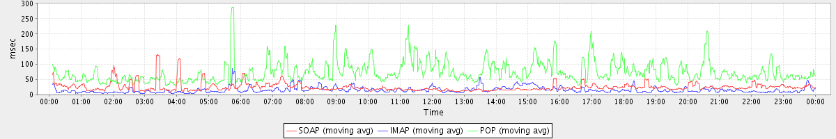 Host zm09.stanford.edu: Mailboxd: Response Time by Client Protocol