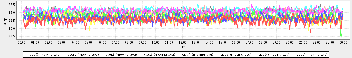 avg(cpu0) = 92.57 avg(cpu1) = 93.23 avg(cpu2) = 93.53 avg(cpu3) = 93.24 avg(cpu4) = 95.39 avg(cpu5) = 95.61 avg(cpu6) = 95.29 avg(cpu7) = 95.08