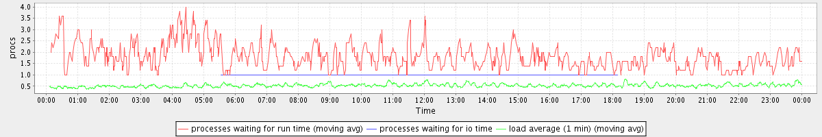 avg(processes waiting for run time) = 0.67 avg(processes waiting for io time) = 0.00 avg(load average (1 min)) = 0.53