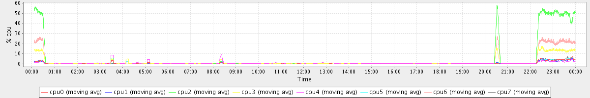 avg(cpu0) = 0.47 avg(cpu1) = 0.35 avg(cpu2) = 5.07 avg(cpu3) = 1.58 avg(cpu4) = 0.76 avg(cpu5) = 0.43 avg(cpu6) = 2.23 avg(cpu7) = 0.49