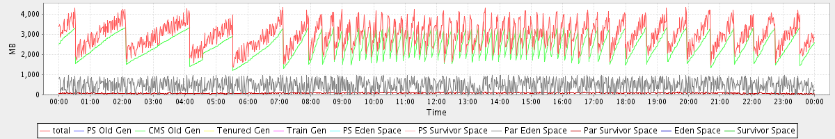 avg(total) = 2961.82 avg(PS Old Gen) = 0.00 avg(CMS Old Gen) = 2400.84 avg(Tenured Gen) = 0.00 avg(Train Gen) = 0.00 avg(PS Eden Space) = 0.00 avg(PS Survivor Space) = 0.00 avg(Par Eden Space) = 477.97 avg(Par Survivor Space) = 83.01 avg(Eden Space) = 0.00 avg(Survivor Space) = 0.00