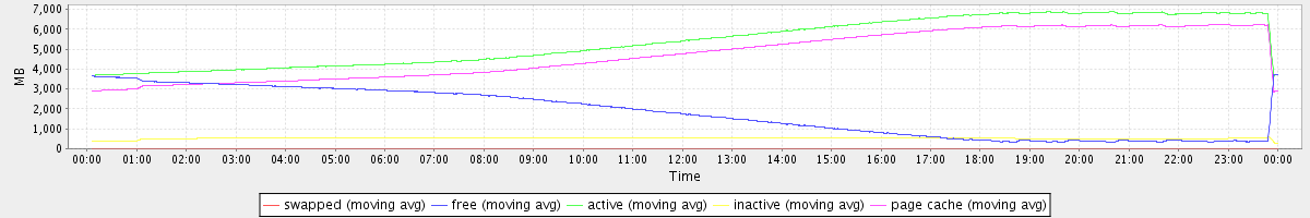 avg(swapped) = 0.20 avg(free) = 1796.92 avg(active) = 5388.32 avg(inactive) = 515.39 avg(page cache) = 4737.99