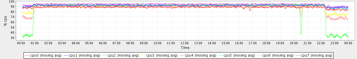 avg(cpu0) = 88.81 avg(cpu1) = 91.95 avg(cpu2) = 85.78 avg(cpu3) = 90.15 avg(cpu4) = 94.23 avg(cpu5) = 93.56 avg(cpu6) = 91.41 avg(cpu7) = 93.96