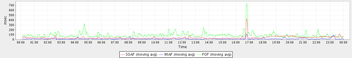 Host zm01.stanford.edu: Mailboxd: Response Time by Client Protocol