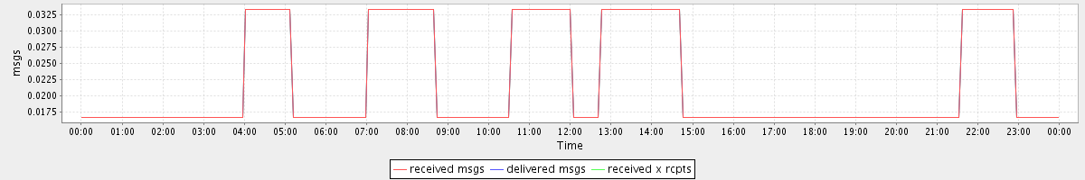 avg(received msgs) = 0.01 avg(delivered msgs) = 0.01 avg(received x rcpts) = 0.01