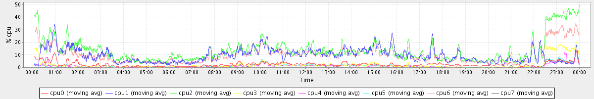 avg(cpu0) = 1.15 avg(cpu1) = 0.31 avg(cpu2) = 0.33 avg(cpu3) = 0.24 avg(cpu4) = 0.22 avg(cpu5) = 0.24 avg(cpu6) = 0.28 avg(cpu7) = 0.23