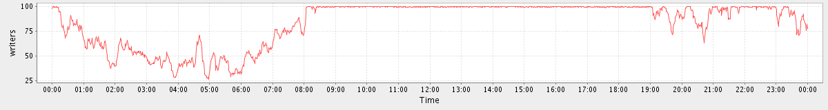 avg(sda read) = 24.42 avg(sda write) = 63.61
