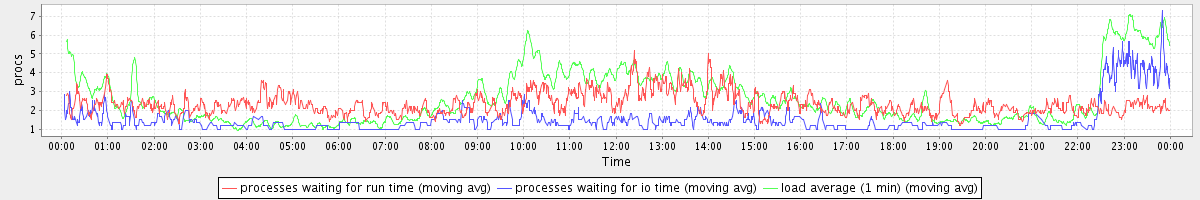 avg(processes waiting for run time) = 1.68 avg(processes waiting for io time) = 0.80 avg(load average (1 min)) = 2.63