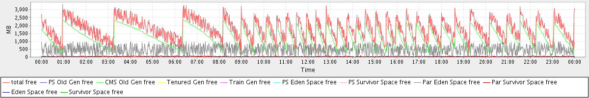 avg(total free) = 1806.06 avg(PS Old Gen free) = 0.00 avg(CMS Old Gen free) = 1287.72 avg(Tenured Gen free) = 0.00 avg(Train Gen free) = 0.00 avg(PS Eden Space free) = 0.00 avg(PS Survivor Space free) = 0.00 avg(Par Eden Space free) = 484.50 avg(Par Survivor Space free) = 33.84 avg(Eden Space free) = 0.00 avg(Survivor Space free) = 0.00