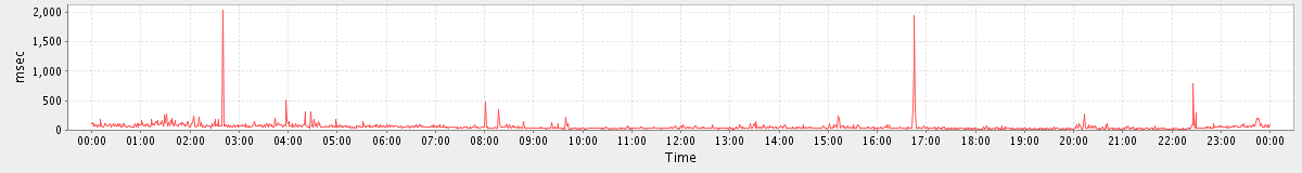 avg(DeleteAccountRequest) = 70519.75 avg(BackupQueryRequest) = 505.75 avg(CancelTaskRequest) = 373.00 avg(CheckRecurConflictsRequest) = 930.22 avg(SendInviteReplyRequest) = 457.94 avg(AutoCompleteRequest) = 830.38 avg(ConvActionRequest.delete) = 634.21 avg(FolderActionRequest.empty) = 4270.89 avg(BackupRequest) = 14577.50 avg(GetQuotaUsageRequest) = 1255.00