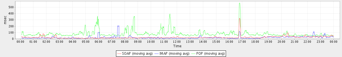 Host zm03.stanford.edu: Mailboxd: Response Time by Client Protocol