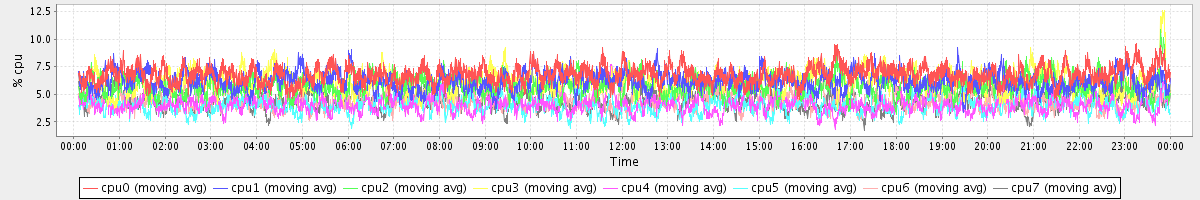 avg(cpu0) = 6.79 avg(cpu1) = 6.21 avg(cpu2) = 5.79 avg(cpu3) = 6.20 avg(cpu4) = 4.09 avg(cpu5) = 4.07 avg(cpu6) = 4.53 avg(cpu7) = 4.47