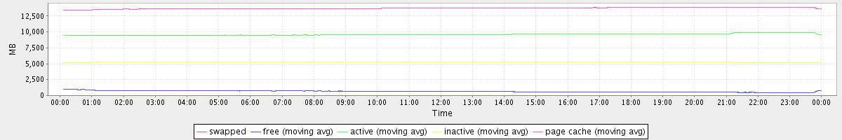 avg(swapped) = 0.00 avg(free) = 646.16 avg(active) = 9614.41 avg(inactive) = 5297.21 avg(page cache) = 13736.48
