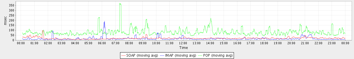 avg(IMAP) = 15.01 avg(IMAP SSL) = 1286.22 avg(POP) = 0.41 avg(POP SSL) = 123.46