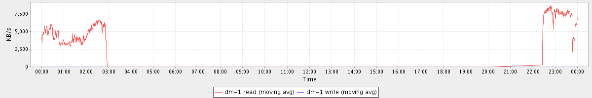 avg(dm-0 read) = 2.14 avg(dm-0 write) = 11.35