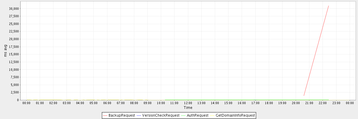 avg(BackupRequest) = 16194.00 avg(VersionCheckRequest) = 738.00 avg(AuthRequest) = 44.67 avg(GetDomainInfoRequest) = 3.05