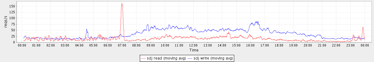 avg(sda read) = 29.53 avg(sda write) = 74.24