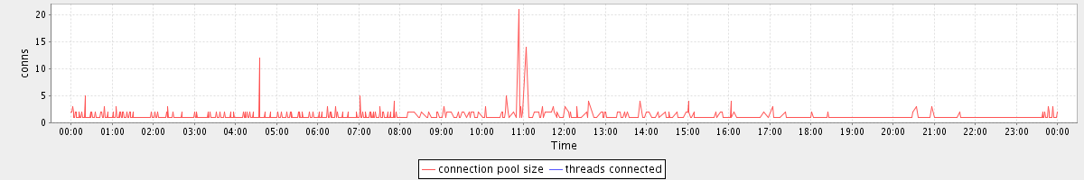 avg(connection pool size) = 0.73 avg(threads connected) = 0.00