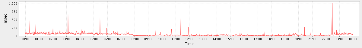 max(GetMsgRequest) = 76.00 max(SearchConvRequest) = 64.00 max(GetFolderRequest) = 437.00 max(SearchRequest) = 96.00 max(ItemActionRequest.delete) = 374.00 max(MsgActionRequest.delete) = 131.00 max(NoOpRequest) = 136.00 max(SyncRequest) = 181.00 max(GetEffectiveFolderPermsRequest) = 312.00 max(AddMsgRequest) = 105.00