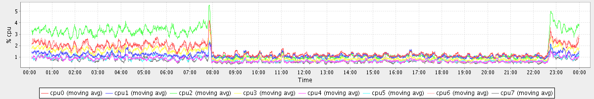 avg(cpu0) = 1.55 avg(cpu1) = 0.15 avg(cpu2) = 0.25 avg(cpu3) = 0.14 avg(cpu4) = 0.10 avg(cpu5) = 0.09 avg(cpu6) = 0.15 avg(cpu7) = 0.10