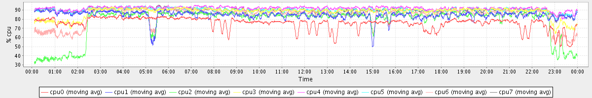 avg(cpu0) = 75.75 avg(cpu1) = 84.52 avg(cpu2) = 77.55 avg(cpu3) = 87.72 avg(cpu4) = 91.81 avg(cpu5) = 90.40 avg(cpu6) = 83.64 avg(cpu7) = 89.72