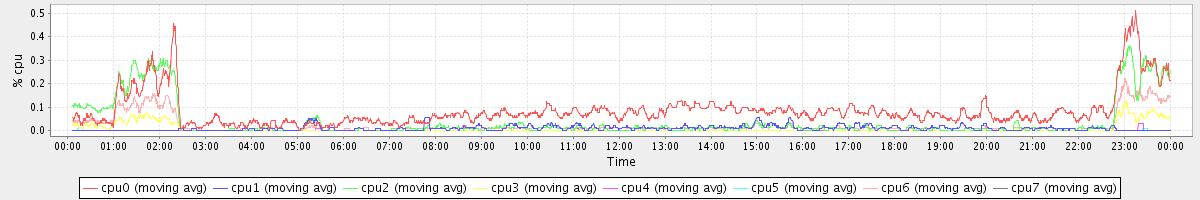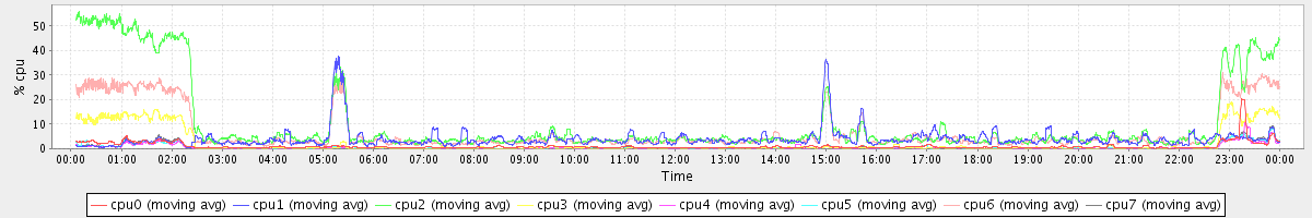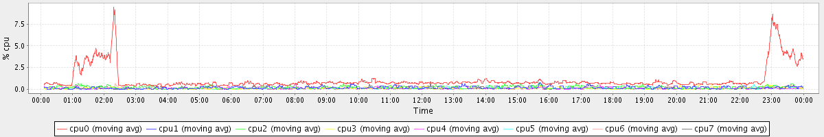 avg(cpu0) = 1.08 avg(cpu1) = 0.18 avg(cpu2) = 0.21 avg(cpu3) = 0.11 avg(cpu4) = 0.09 avg(cpu5) = 0.09 avg(cpu6) = 0.12 avg(cpu7) = 0.11