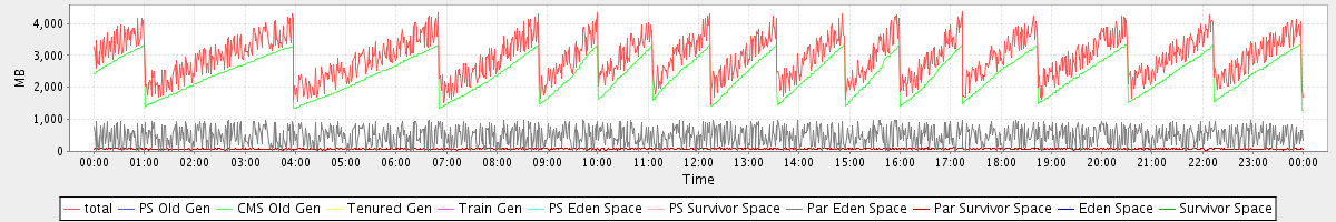 avg(total) = 2955.47 avg(PS Old Gen) = 0.00 avg(CMS Old Gen) = 2393.88 avg(Tenured Gen) = 0.00 avg(Train Gen) = 0.00 avg(PS Eden Space) = 0.00 avg(PS Survivor Space) = 0.00 avg(Par Eden Space) = 480.13 avg(Par Survivor Space) = 81.47 avg(Eden Space) = 0.00 avg(Survivor Space) = 0.00