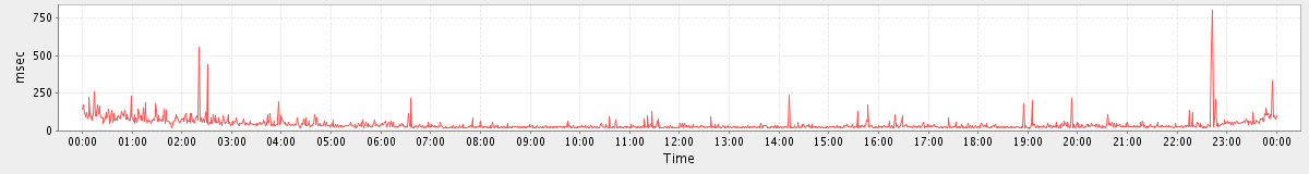 max(GetMsgRequest) = 43.00 max(MsgActionRequest.move) = 35.00 max(SearchConvRequest) = 38.00 max(GetFolderRequest) = 79.00 max(SearchRequest) = 96.00 max(MsgActionRequest.delete) = 442.00 max(NoOpRequest) = 161.00 max(SyncRequest) = 782.00 max(MsgActionRequest.trash) = 39.00 max(GetAppointmentRequest) = 164.00