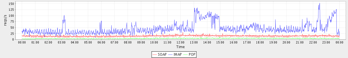 Host zm04.stanford.edu: Mailboxd: Request Rate by Client Protocol
