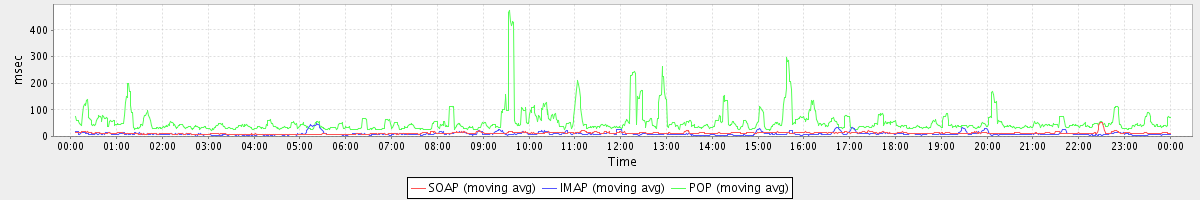 Host zm04.stanford.edu: Mailboxd: Response Time by Client Protocol