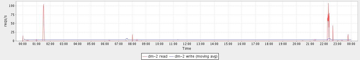 avg(dm-1 read) = 0.13 avg(dm-1 write) = 19.98