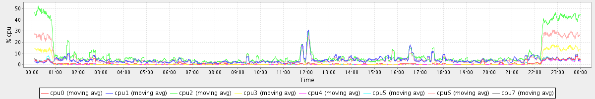 avg(cpu0) = 0.91 avg(cpu1) = 0.14 avg(cpu2) = 0.21 avg(cpu3) = 0.12 avg(cpu4) = 0.08 avg(cpu5) = 0.09 avg(cpu6) = 0.12 avg(cpu7) = 0.09
