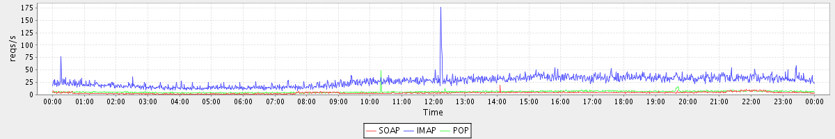 Host zm01.stanford.edu: Mailboxd: Request Rate by Client Protocol