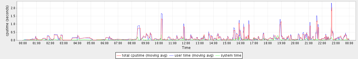 avg(total cputime) = 0.05 avg(user time) = 0.04 avg(system time) = 0.00