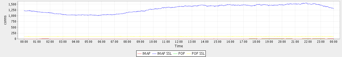 avg(IMAP) = 3.99 avg(IMAP SSL) = 1303.52 avg(POP) = 0.00 avg(POP SSL) = 103.62