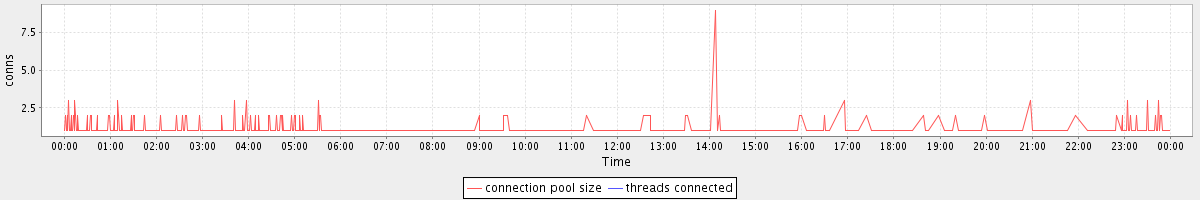 avg(connection pool size) = 0.47 avg(threads connected) = 0.00
