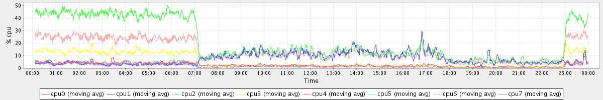 avg(cpu0) = 2.08 avg(cpu1) = 0.29 avg(cpu2) = 0.42 avg(cpu3) = 0.25 avg(cpu4) = 0.17 avg(cpu5) = 0.22 avg(cpu6) = 0.29 avg(cpu7) = 0.20