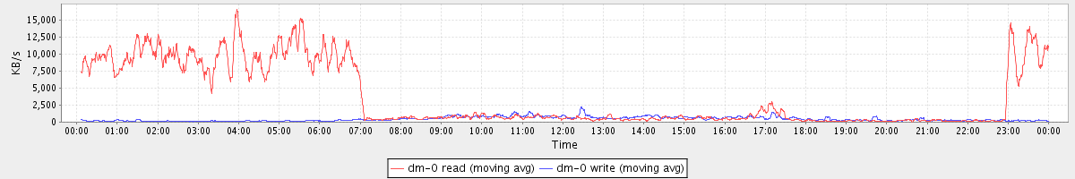avg(dm-0 read) = 3645.17 avg(dm-0 write) = 444.85