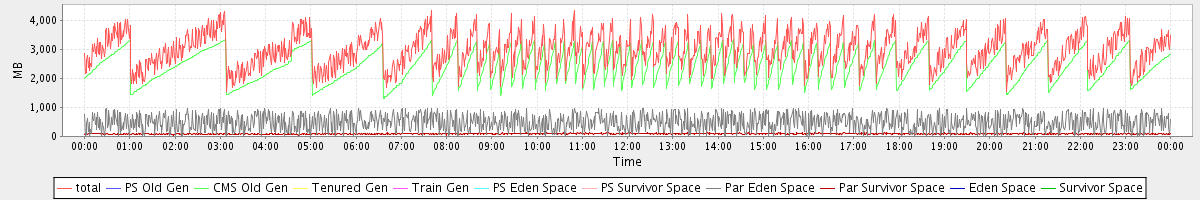 avg(total) = 2995.64 avg(PS Old Gen) = 0.00 avg(CMS Old Gen) = 2412.63 avg(Tenured Gen) = 0.00 avg(Train Gen) = 0.00 avg(PS Eden Space) = 0.00 avg(PS Survivor Space) = 0.00 avg(Par Eden Space) = 492.39 avg(Par Survivor Space) = 90.62 avg(Eden Space) = 0.00 avg(Survivor Space) = 0.00