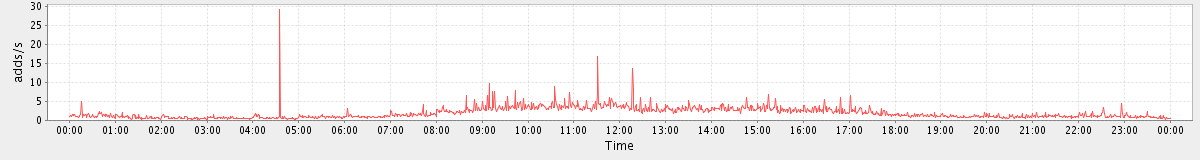 max(MsgActionRequest.move) = 1193.00 max(SearchRequest) = 678.00 max(GetContactsRequest) = 233.00 max(MsgActionRequest.delete) = 1622.00 max(NoOpRequest) = 273.00 max(MsgActionRequest.update) = 154.00 max(SetAppointmentRequest) = 307.00 max(GetFolderRequest) = 198.00 max(SyncRequest) = 2641.00 max(GetAppointmentRequest) = 1804.00